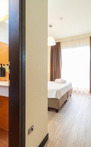 Diese großzügige Unterkunft befindet sich im fünften Stock und bietet auf 44 m² zwei miteinander verbundene Zimmer, die maximalen Komfort und Privatsphäre gewährleisten. Sie ist ideal für eine vierköpfige Familie, die getrennte, aber dennoch verbundene Räume sowie den Vorteil von zwei eigenen Badezimmern genießen möchte.