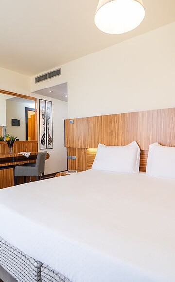Großzügiges Zimmer zu 26 m², ideal für drei Personen, z.B. für eine Familie mit einem Kind. Auf Wunsch lässt sich hier auch ein Kinderbett für Kinder bis zu 2 Jahren platzieren.