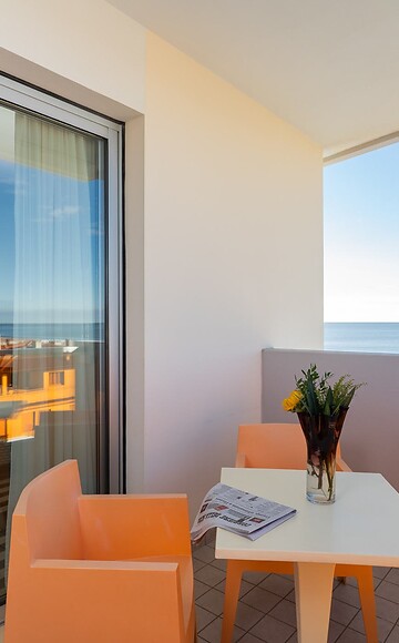 Ausstattung: Bad mit Fenster, Balkon mit Meerblick, TV-Sat-LCD, Minibar, Föhn, Klimaanlage, Safe, W-Lan-Verbindung und SKY (nur in originaler und italienischer Sprache).