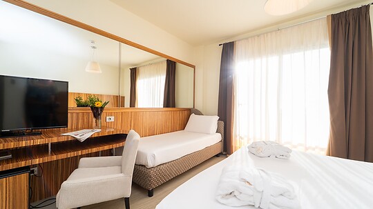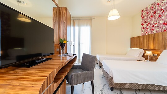 Rooms & suites at the Bibione Palace Hotel, where luxury and comfort combine for a wonderful stay. Our stylish rooms and suites are designed to meet all your needs, combining modern design with touches of Italian sophistication. Enjoy splendid views of the Adriatic Sea from your private balcony, relax in our king-size beds, and make use of the many exclusive services designed to make your stay so special. Whether you're travelling as a couple, as a family or for business, the Hotel Bibione Palace has the ideal solution for you. Book now and enjoy the stylish setting and impeccable service of our hotel, providing an experience that will leave you with wonderful memories.