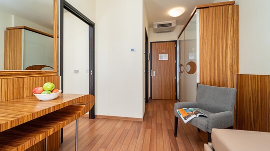 The Easy Suite without sea view is a comfortable 32 m² suite that can accommodate up to four people. It consists of two separate rooms: a bedroom with a double bed and a...