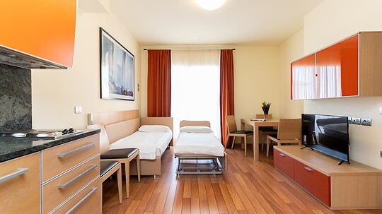 The Living Orange is a 22 m² room, ideal for one adult and a child up to 13 years old. It is furnished with a comfortable double bed and features a terrace with a...