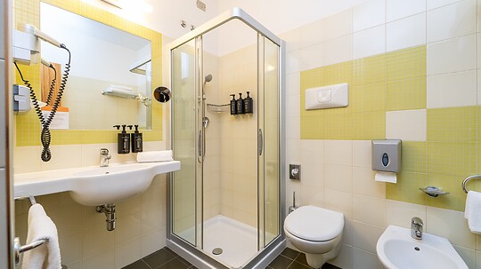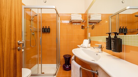 Cosy room of 22 m² with space for two people. On request, a bed for children up to 2 years can be placed here.