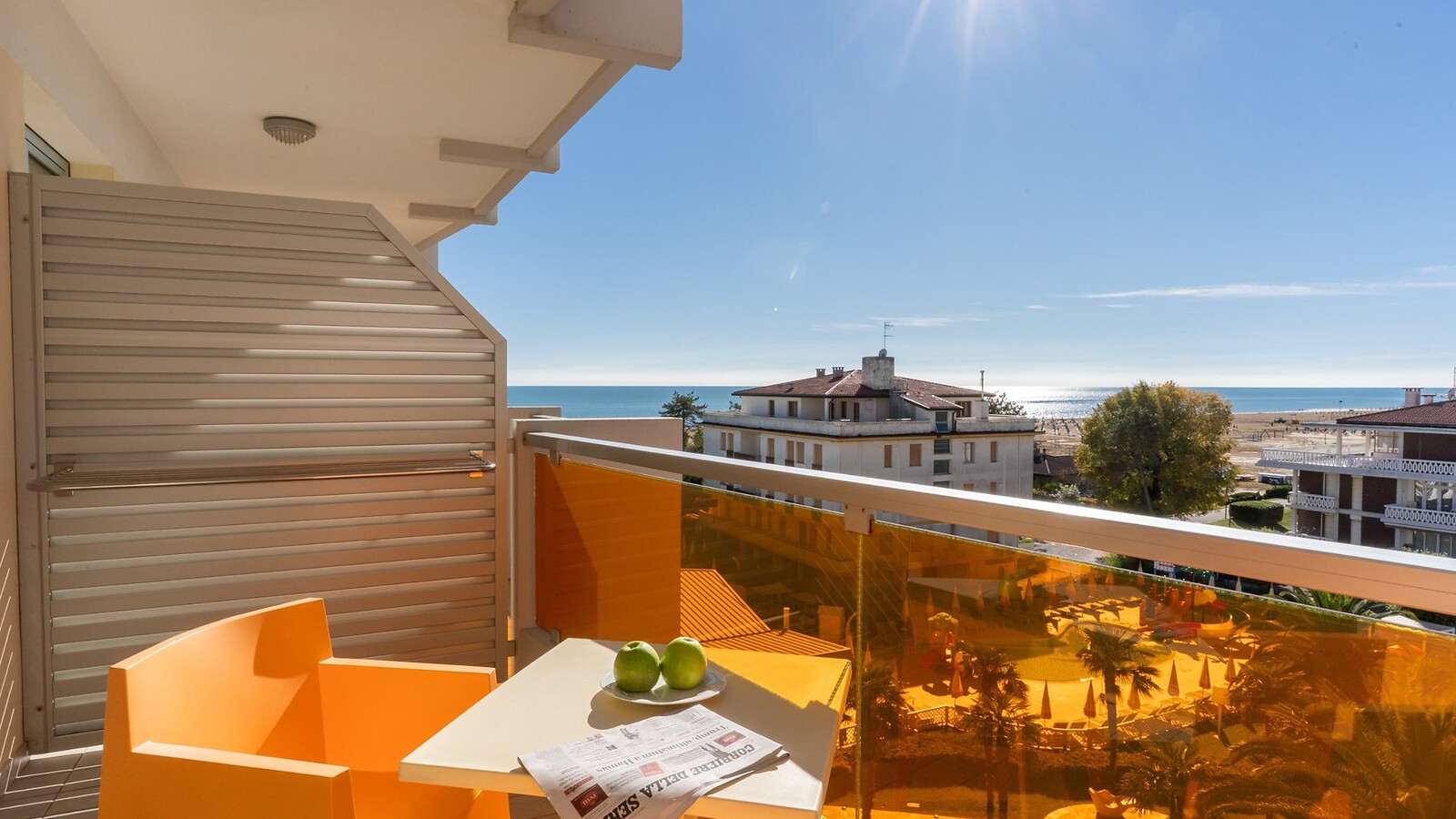 Inoltre, dispone di due balconi con vista mare laterale verso est, permettendo di godere di momenti di tranquillità con una splendida vista sul mare all'alba.